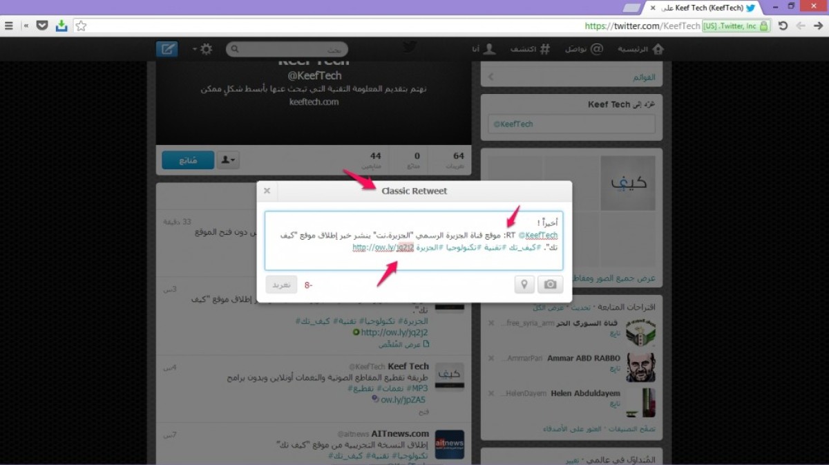 أعجبتك تغريدة، تريد القيام بإعادة نشرها “ريتويت” (Retweet) ولكن مع بعض التعديلات عليها ؟ يمكنك الآن القيام بذلك بسرعة بواسطة إضافة لمتصفح جوجل كروم وفايرفوكس.