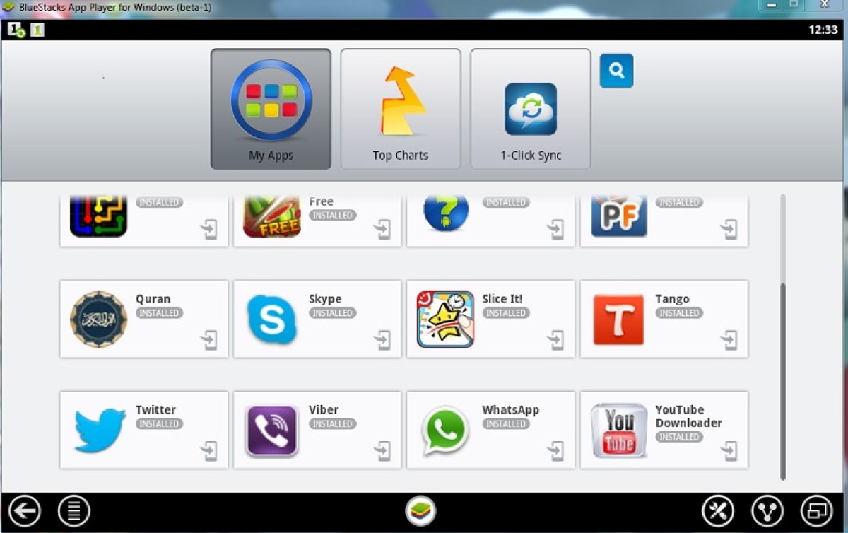 وهكذا بالمثل تستطيع تنزيل أي تطبيق تريده من تلك التطبيقات الموجودة في المتجر المجاني 1Mobile، كتطبيق فايبر، سكايب، تانجو، وأيضاً باستطاعتك ضبط إعدادت البرنامج وتشغيله بوضعية الشاشة الكاملة لرؤية أوضح وأفضل. كما يمكن الرجوع دوماً إلى الصفحة الرئيسية بالضغط على أيقونة البرنامج التي تقع أسفل ومنتصف الشاشة.