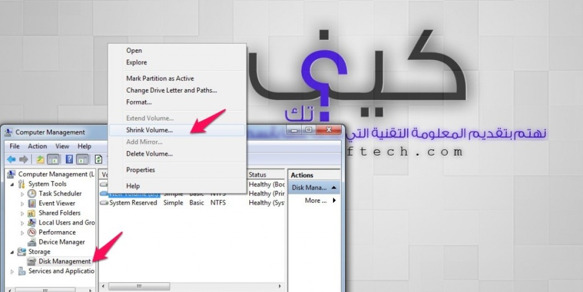 لتقسيم القرص الصلب إلى عدة سواقات في ويندوز 7 قم بالتالي: