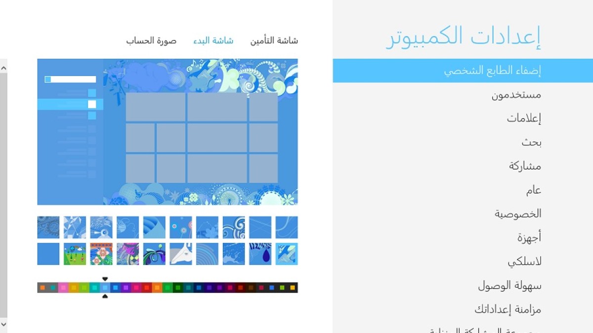 لتغيير الخلفية في واجهة مترو (الواجهة الأساسية لويندوز 8):