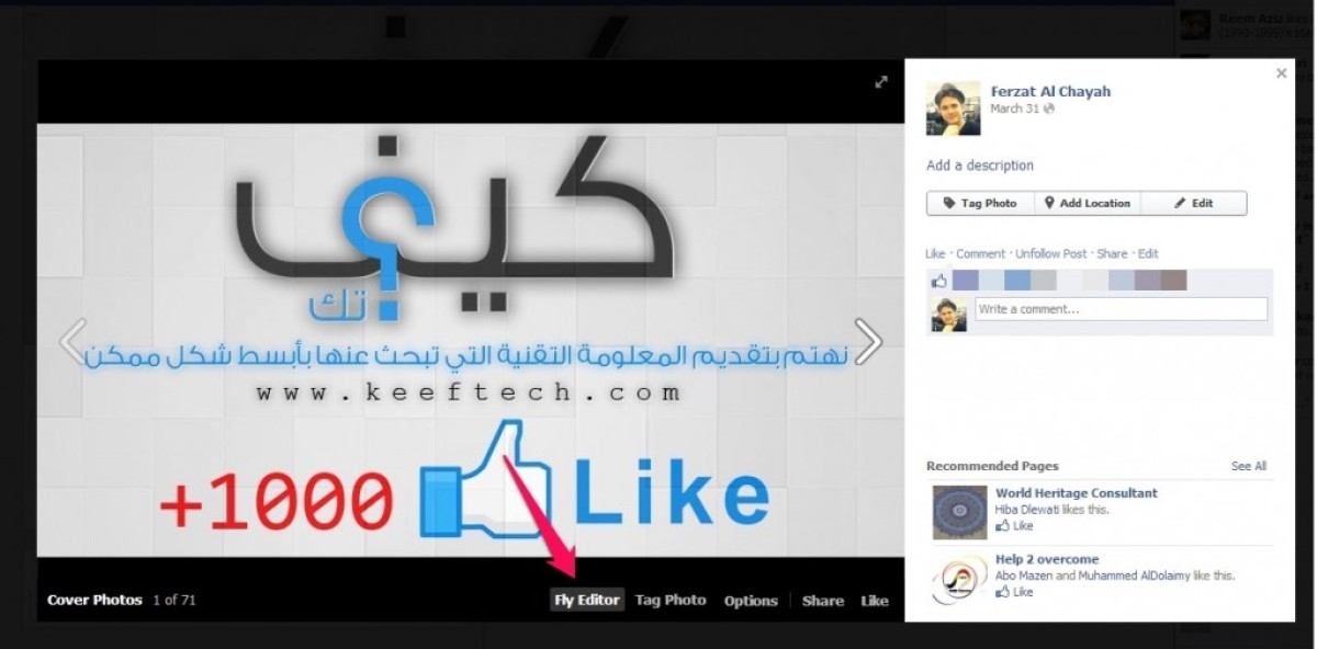 - قم بتثبيت إضافة Fly Photo Editor for Facebook من هنا.